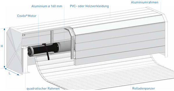 • Schützt den Rolladen im aufgewickelten Zustand vor UV-Strahlung und Überhitzung