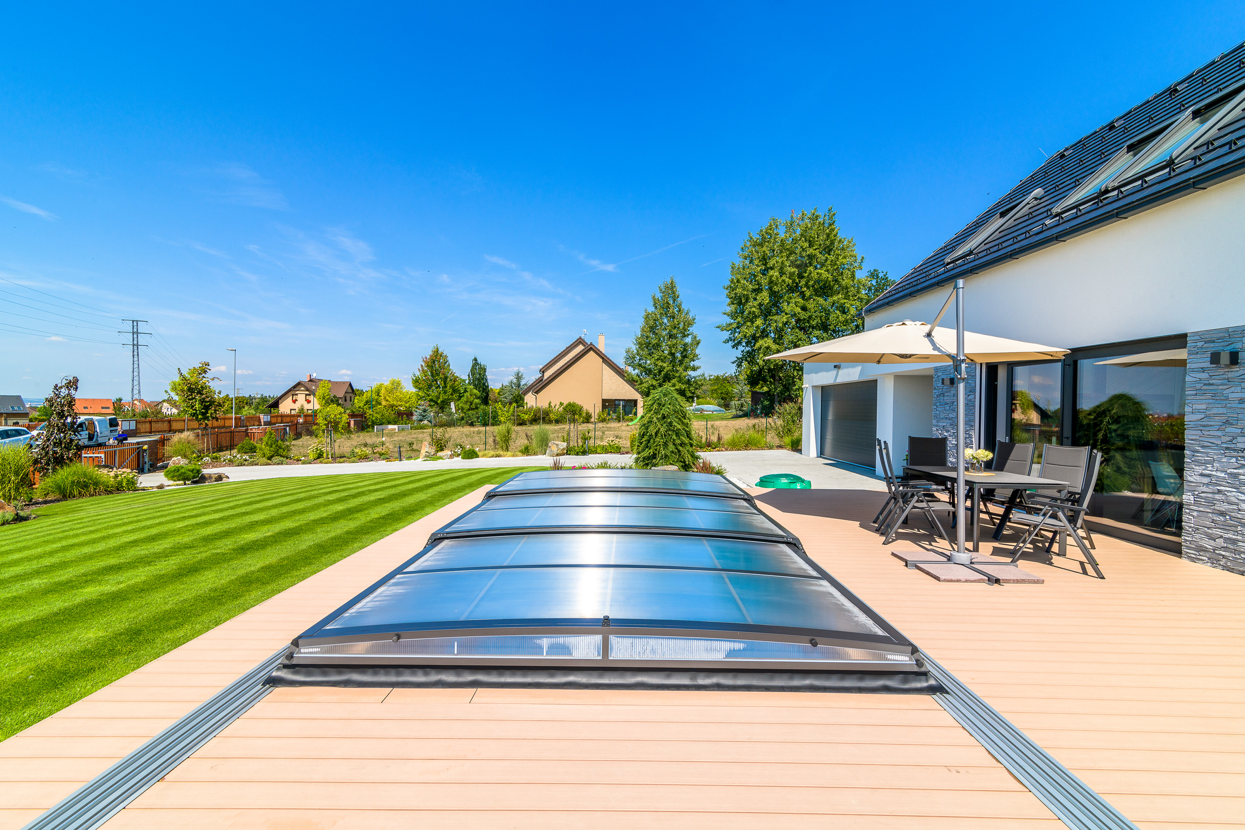 Die mobile Schwimmbad-Überdachung ist heutzutage ein untrennbarer Bestandteil des Schwimmbades. Dank den Eigenschaften der neu eingesetzten Technologien ermöglicht sie auf ideale Weise, die Sonnenenergie zu nutzen und so die Badesaison zu verlängern und die Betriebskosten zu reduzieren. Ein revolutionäres System der Swimmingpool-Überdachung in höchster Qualität.