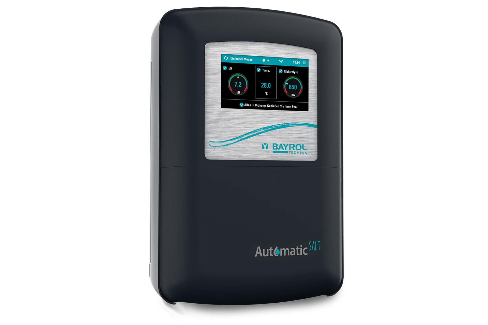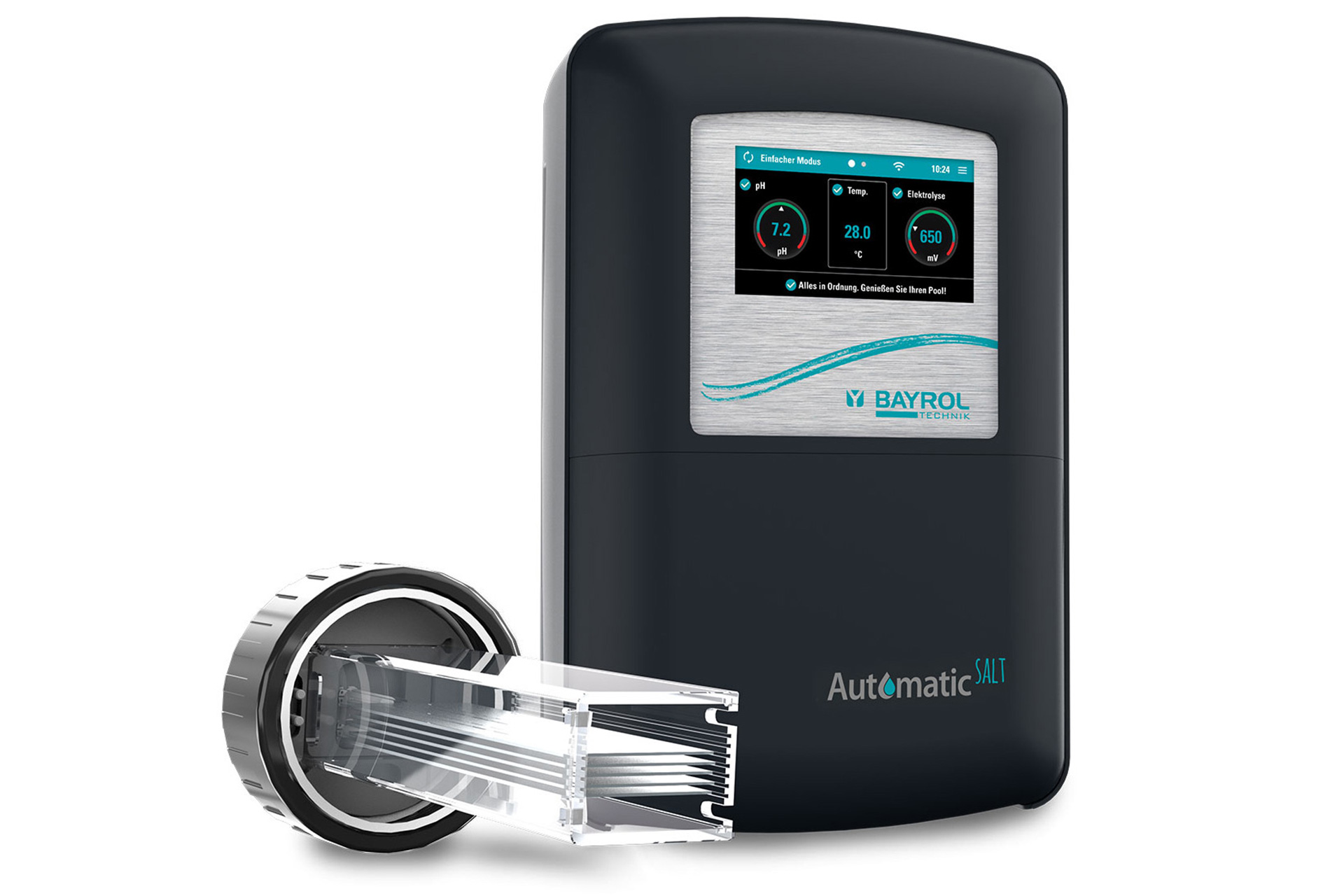 Automatic SALT ist das vollautomatische Salzelektrolyse-System für perfekte Wasserqualität in allen Salzwasserpools. Das Design der Zelle und der Smart&Easy - Connector machen die Installation besonders einfach. Entwickelt und hergestellt in Deutschland, erfüllt Automatic SALT alle Qualitätskriterien von BAYROL Technik.