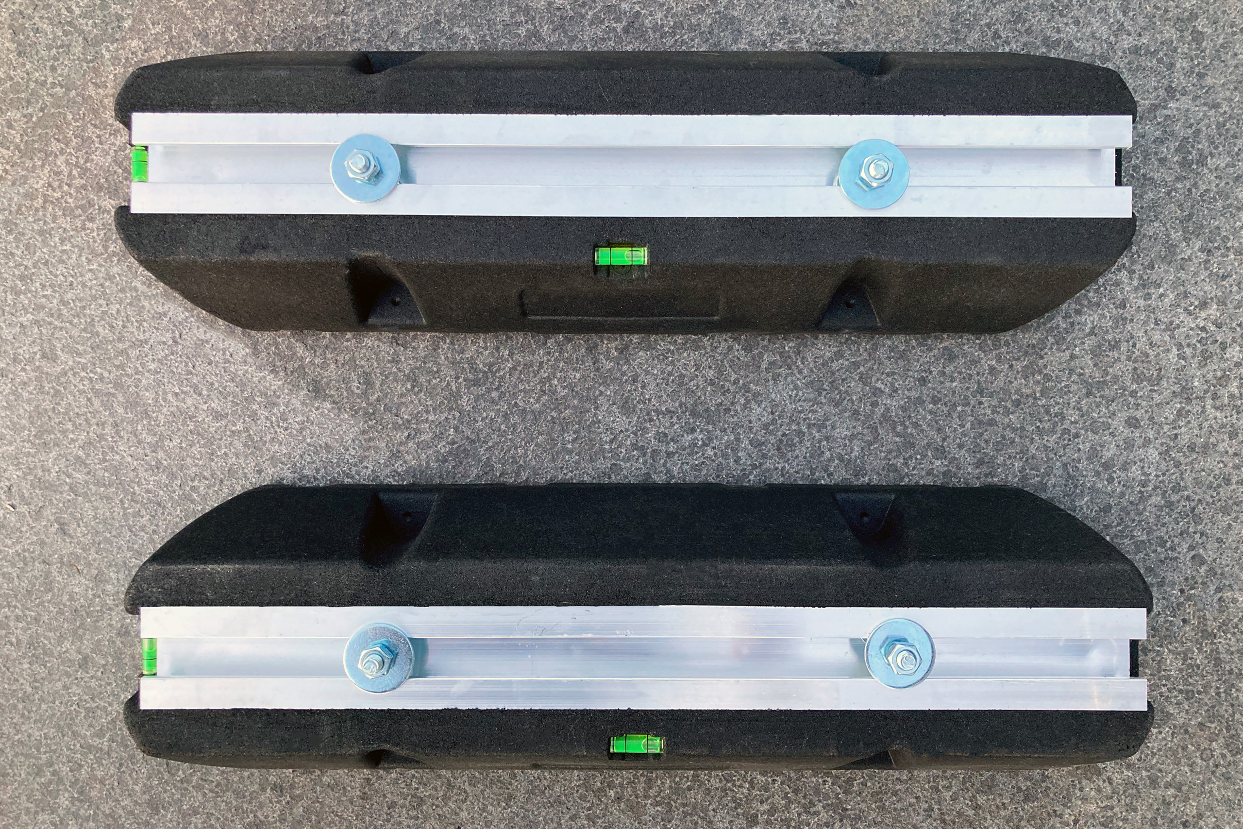 Die Herstellung erfolgt aus recyceltem Kautschuk Granulat + Polyurethan. Lieferung inkl. Befestigungsmaterial (je 2 Schrauben, Unterlegscheiben, Muttern) zur schnellen und effektiven Befestigung der Wärmepumpe an das integrierte Aluminiumprofil + je 2 Wasserwaagen, für eine korrekte Positionierung und Ausrichtung.
