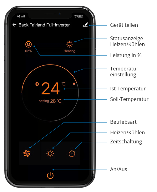 Durch den Kauf einer Fairland INVER-X Pool-Wärmepumpe haben Sie die Möglichkeit, das Gerät aus der Ferne zu überwachen und zu konfigurieren. Mit dieser praktischen Option können Sie überall und jederzeit alle erforderlichen Anpassungen am Gerät während des Betriebs vornehmen.