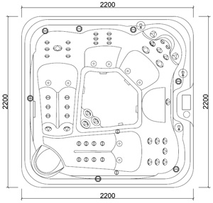 Die Größe jedes Sitzes wurde nach europäischen Normen gründlich studiert. Für jeden Sitz des Whirlpools wurde der Bereich so definiert, um die Konturen Ihres Körpers bestens zu kopieren, und damit das Sitzen sowie die Massage komfortabel sind.